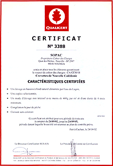 この認定書は、フランス本国およびフランス領(ニューカレドニアなど)で流通している数多い水産物の中でも、わずか8商品にしか与えられていないもので、エビでは初めての快挙である。認定書の取得には膨大で厳しい品質管理基準を全てクリアすることが条件で、認定機関による養殖場・工場などの現地調査をはじめ、最低でも5~6年を要する。認定後も毎年厳しい審査が行われ、万が一、品質管理基準が守られていない場合は、即刻認定書が取り消される。同認定書は向こう3年間有効で、この期間内に認定された現行品質管理基準が完全に守られていることが条件となっている。